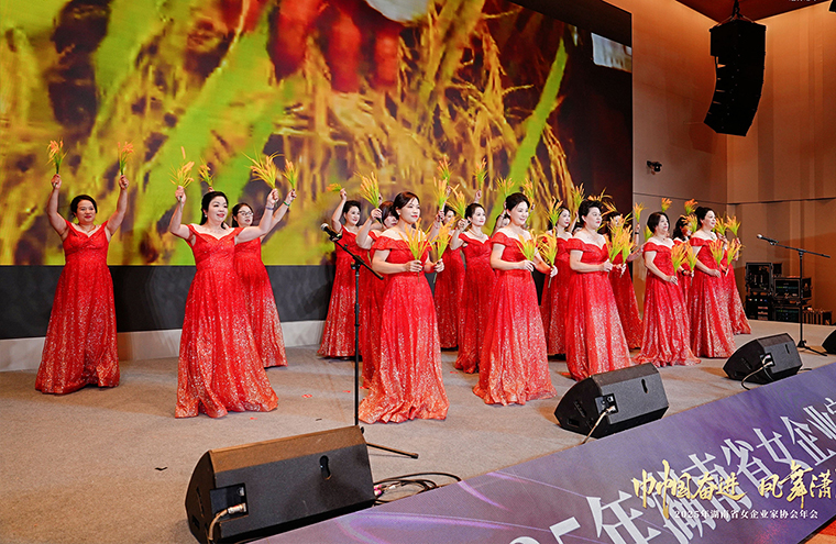 晚宴現(xiàn)場(chǎng)燈火璀璨,暖意融融,文藝表演的華彩篇章也隨之逐一鋪展。由各地市州女企協(xié)精心編排的節(jié)目輪番登場(chǎng),湖南省女企業(yè)家協(xié)會(huì)會(huì)歌《花漾瀟湘》隨之重磅發(fā)布。舞蹈翩躚、歌聲嘹亮,一個(gè)個(gè)獨(dú)具匠心的表演如璀璨星辰點(diǎn)亮全場(chǎng)。這一夜,我們以歌舞抒懷,以歡笑結(jié)緣,不僅見(jiàn)證了瀟湘巾幗的多才多藝,更凝聚了攜手同行的深厚情誼。時(shí)光短暫,美好長(zhǎng)存,愿這份并肩向前的力量永續(xù)傳遞,讓我們懷揣夢(mèng)想再出發(fā),期待來(lái)年盛會(huì)重逢,共譜新篇。