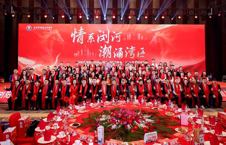 情系瀏陽河,潮涌大灣區(qū)。1月17日,深圳市湖南瀏陽商會第二屆就職典禮暨2026年度迎新盛典隆重舉行。中共湖南省瀏陽市委常委、宣傳部部長李愛民,瀏陽市人民政府副市長王浩,瀏陽市政協(xié)副主席、市工商聯(lián)主席陳靜,瀏陽市教育基金會理事長劉旭,原深圳市審計局黨組書記鄧平,原深圳市交警支隊政委曹蒲生,原深圳市空管站黨委書記李曉春等領(lǐng)導(dǎo)嘉賓出席活動。香港長沙聯(lián)誼會會長、深圳湖南商會副會長、綠之韻集團董事長胡國安受邀參會,榮任商會榮譽會長,與政企各界代表、商會同仁及瀏陽鄉(xiāng)賢齊聚一堂,共敘鄉(xiāng)情、共商發(fā)展、共啟新篇。
