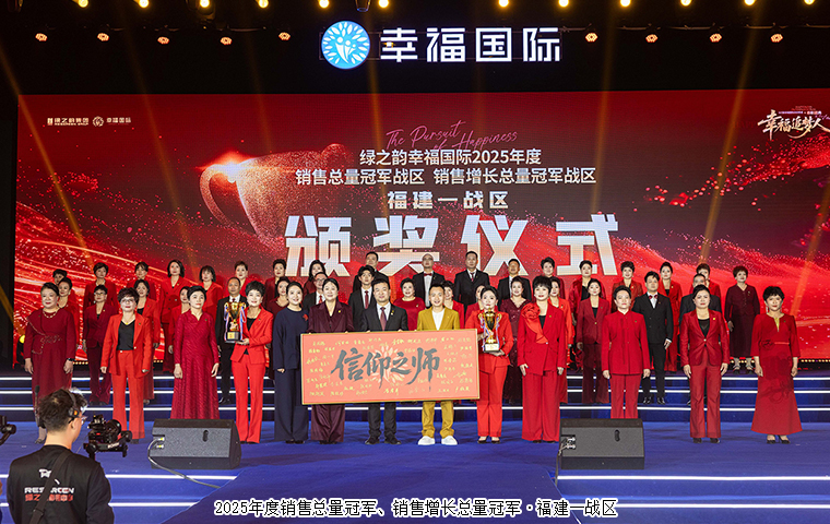 信念如磐,行動(dòng)如鋒。福建一戰(zhàn)區(qū)憑借著堅(jiān)定的信仰與卓越的執(zhí)行,在激烈的競爭中脫穎而出,一舉斬獲“2025年度銷售總量冠軍戰(zhàn)區(qū)”與“2025年度銷售增長總量冠軍戰(zhàn)區(qū)”雙項(xiàng)殊榮,被市場(chǎng)譽(yù)為“信仰之師”。綠之韻集團(tuán)總裁勞嘉,運(yùn)營總裁、幸福導(dǎo)師夏運(yùn)良將鐫刻著46位市場(chǎng)領(lǐng)袖手寫簽名的榮耀牌匾授予這支“信仰之師”。幸福代言人黃圣凱分享獲獎(jiǎng)感言。
