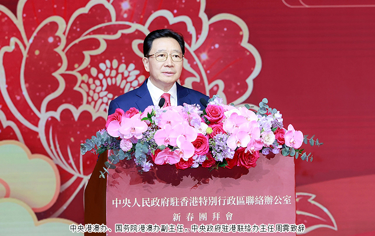 中央港澳辦、國務(wù)院港澳辦副主任,中央政府駐港聯(lián)絡(luò)辦主任周霽作了題為《同舟共濟(jì)譜華章 策馬揚(yáng)鞭啟新程》的致辭。周霽表示,過去一年,在以習(xí)近平同志為核心的黨中央堅(jiān)強(qiáng)領(lǐng)導(dǎo)下,國家各項(xiàng)事業(yè)取得新的歷史性成就?!笆奈濉眻A滿收官,我國經(jīng)濟(jì)總量突破140萬億元,經(jīng)濟(jì)實(shí)力、科技實(shí)力、國防實(shí)力、綜合國力躍上新臺階。中共二十屆四中全會(huì)擘畫高質(zhì)量發(fā)展新藍(lán)圖,中國式現(xiàn)代化的巨輪乘風(fēng)破浪、揚(yáng)帆遠(yuǎn)航。習(xí)近平主席一直牽掛著香港發(fā)展和市民福祉,強(qiáng)調(diào)支持香港更好融入和服務(wù)國家發(fā)展大局,指引香港由治及興邁出新步伐。這一年,香港堅(jiān)決維護(hù)國家主權(quán)、安全、發(fā)展利益,社會(huì)保持和諧穩(wěn)定,經(jīng)濟(jì)發(fā)展持續(xù)向好,民生不斷改善,一系列盛事、“峰會(huì)”成功舉辦,國際調(diào)解院在港揭牌運(yùn)行,香港蟬聯(lián)全球最自由經(jīng)濟(jì)體,世界競爭力、金融中心指數(shù)、世界人才排名位列前茅,五所高校穩(wěn)居世界百強(qiáng)。東方之珠正煥發(fā)出更加璀璨奪目的光彩。他進(jìn)一步表示,新的一年,中央政府駐港聯(lián)絡(luò)辦將繼續(xù)全面準(zhǔn)確、堅(jiān)定不移貫徹“一國兩制”方針,繼續(xù)全力支持李家超行政長官和特區(qū)政府依法施政,全力支持服務(wù)香港實(shí)現(xiàn)更好發(fā)展,為以中國式現(xiàn)代化推進(jìn)強(qiáng)國建設(shè)、民族復(fù)興偉業(yè)作出更大貢獻(xiàn)。