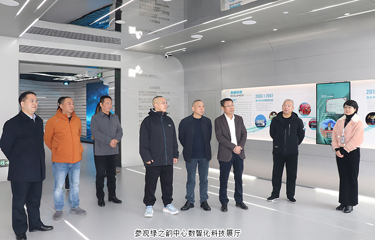 調(diào)研組一行先后參觀了綠之韻中心數(shù)智化科技展廳、黨建教育陣地及政協(xié)委員工作室。數(shù)智化科技展廳以“水之道”文化為核心設(shè)計理念,融合東方哲學(xué)智慧與西方先進技術(shù),通過數(shù)字化互動系統(tǒng)全面展現(xiàn)了企業(yè)發(fā)展歷程、企業(yè)文化、全鏈條產(chǎn)品體系、核心科研突破及公益足跡。