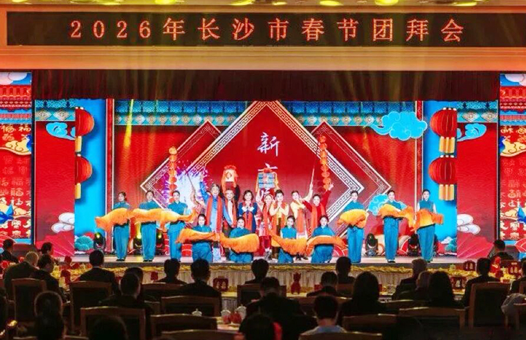 活動現(xiàn)場,與會嘉賓共同欣賞了精彩紛呈的文藝演出。湘劇《沁園春·長沙》由梅花獎得主曹汝龍、周帆傾情演繹,彰顯了湖湘文化的深厚底蘊(yùn);少兒花鼓戲串燒《戲韻童聲》活潑生動,展現(xiàn)了傳統(tǒng)戲曲的傳承活力;詩朗誦、舞蹈旗袍秀、花鼓戲選段及歌舞《燈火里的中國》等節(jié)目輪番上演,為團(tuán)拜會增添了濃厚的文化氛圍和節(jié)日喜慶,生動詮釋了長沙作為歷史文化名城的藝術(shù)風(fēng)采與時代精神。