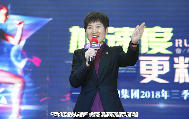 綠之韻集團(tuán)董事、總裁勞嘉在講話中首先向新入職員工,向第一次參加集團(tuán)員工大會(huì)的各位新領(lǐng)導(dǎo)、新分公司同事表示熱烈歡迎,向第三季度獲得優(yōu)秀稱號(hào)的集體與個(gè)人表示祝賀,向五年服務(wù)英才獎(jiǎng)、十年服務(wù)忠誠(chéng)獎(jiǎng)獲得者表示祝賀和感謝。她在講話中指出,2018年前三個(gè)季度,在大家的共同努力、不懈奮斗下,公司各項(xiàng)工作都取得了比較好的成績(jī)。員工大會(huì)一直是綠之韻“家”文化的一種表現(xiàn)形式,只有認(rèn)同了公司的企業(yè)文化,才有可能走到一起,成為一家人。今天員工大會(huì)的主題為“加速度,更精彩”,加速度不僅是對(duì)我們的要求,更是一種激勵(lì)。感謝從2003年成立至今,一直踐行著自己事業(yè)初心,為綠之韻事業(yè)發(fā)展添磚加瓦的各位優(yōu)秀員工們。希望你們?cè)谖磥?,也能繼續(xù)嚴(yán)格執(zhí)行公司董事會(huì)的各項(xiàng)決策,有責(zé)任,有擔(dān)當(dāng),不忘初心,砥礪奮進(jìn),在第四季度圓滿完成公司各項(xiàng)既定目標(biāo),再創(chuàng)佳績(jī)。