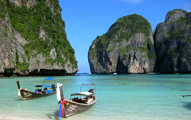 PP島是泰國最深受陽光眷寵的地方之一,憑借著柔軟潔白的沙灘,寧靜碧藍的海水,鬼斧神工的天然洞穴,未受污染的自然風貌,一舉成為當?shù)刂耸挚蔁岬亩燃賱俚刂弧<胰藗兂俗焱С龊?,頭頂炎炎的烈日,感受著清爽的海風,環(huán)游大小PP島,并在美麗的天堂灣游泳、浮潛。家人們在碧綠又清澈的海水中游玩打鬧著,或拿著面包片吸引著海中的魚群,不一會便有一大片熱帶魚聚集在周圍,美不勝收!