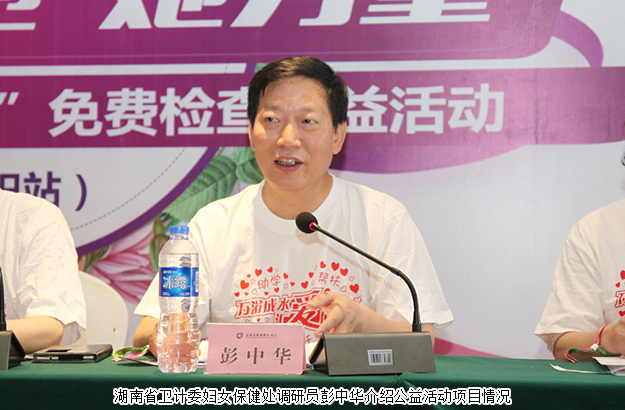 啟動(dòng)儀式上,湖南省衛(wèi)計(jì)委婦女保健處調(diào)研員彭中華介紹公益活動(dòng)項(xiàng)目情況。關(guān)愛(ài)女性健康“兩癌”免費(fèi)檢查公益活動(dòng)是由省委統(tǒng)戰(zhàn)部發(fā)起并統(tǒng)籌組織,各地市州相關(guān)部門,省海外聯(lián)誼會(huì)協(xié)助執(zhí)行,綠之韻集團(tuán)支持參與的大型公益項(xiàng)目。其目的是在幫助貧困家庭婦女享受到“兩癌”的檢測(cè)與防范科普宣傳有效預(yù)防與避免婦女“兩癌”的患病與惡化風(fēng)險(xiǎn),在宣傳兩癌科普知識(shí)的同時(shí)倡導(dǎo)國(guó)民踐行健康的生活狀態(tài)。