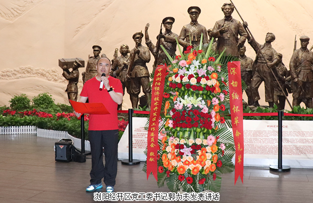 瀏陽經(jīng)開區(qū)黨群局局長陳飛雪主持啟動(dòng)儀式。儀式開始,瀏陽經(jīng)開區(qū)黨工委書記郭力夫在秋收起義紀(jì)念館前向革命烈士敬獻(xiàn)花籃,鞠躬致禮,深情緬懷革命英烈。隨后,瀏陽經(jīng)開區(qū)黨工委書記郭力夫?yàn)楸敬位顒?dòng)致辭。他在講話中說道,今年是秋收起義90周年,值此中國共產(chǎn)黨第十九次全國代表大會勝利召開之際,在這樣一個(gè)特殊的時(shí)間節(jié)點(diǎn)舉行“重走革命路”主題黨日活動(dòng)是希望黨員干部們能通過這樣具有紀(jì)念意義的黨日活動(dòng)在靈魂上得到洗滌、信念上更加堅(jiān)定,在今后的工作生活中時(shí)刻把革命先烈們的不屈精神內(nèi)化于心、外踐于行,以革命先烈為“鏡”,堅(jiān)持不懈提高黨性修養(yǎng),艱苦奮斗,為各自的工作事業(yè)再上一階梯更盡一份力。