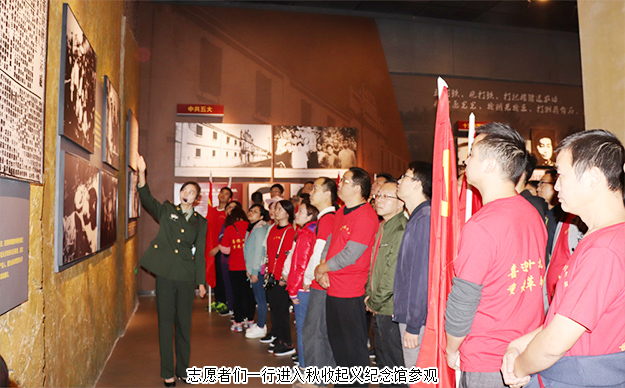 儀式結(jié)束后,在講解員的帶領(lǐng)下,參與活動(dòng)的志愿者們進(jìn)入秋收起義紀(jì)念館參觀。每到一處,志愿者們都會仔細(xì)閱讀陳列墻上的文字與圖片,認(rèn)真聆聽講解員對偉人歷史的介紹,紅色的革命氛圍讓志愿者們身臨其境地感受到了革命先烈們走過的艱辛歷程,體會到先烈們?yōu)楦锩聵I(yè)奮斗終身,為共產(chǎn)主義信念不惜犧牲一切的高尚情懷。