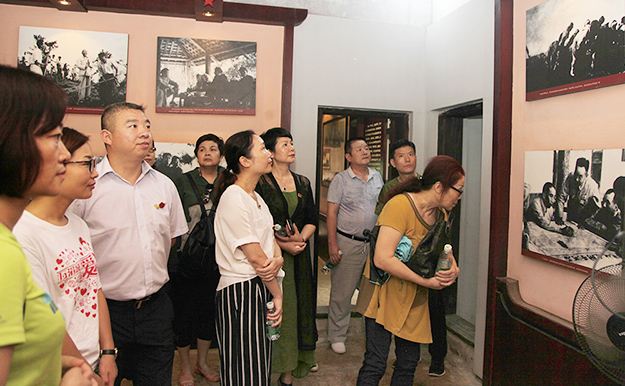 朗誦完畢后,綠之韻國際大酒店支部全體黨員有序進(jìn)入王震同志故居參觀?!盀閲_基,將軍百戰(zhàn)彪青史;畢生革命,桑梓千秋仰大名。”這一幅掛在故居門前的對聯(lián)是對王震將軍波瀾壯闊的一生的最好詮釋。大家滿懷敬畏和感恩,聆聽著講解員描述王震同志生前為革命事業(yè)和黨的事業(yè)奮勇拼搏的光榮事跡,細(xì)致生動的解說將眾人帶到了戰(zhàn)火紛飛的革命歲月,帶到了新中國建設(shè)初期的火紅年代。