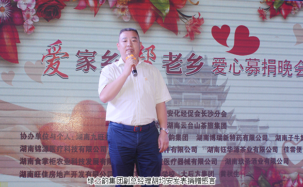 晚會上,綠之韻集團(tuán)副總經(jīng)理胡均安在發(fā)言中動情地說道:沒有安化,就沒有綠之韻;災(zāi)害無情,游子有愛。作為從安化大山走出來的企業(yè)家,集團(tuán)董事長胡國安先生一直關(guān)注家鄉(xiāng),情系家鄉(xiāng),建設(shè)家鄉(xiāng),回報(bào)家鄉(xiāng),主動承擔(dān)社會責(zé)任,用實(shí)際行動回報(bào)桑梓。捐款只是回饋家鄉(xiāng)的一種形式,未來綠之韻集團(tuán)、公益基金會在胡國安董事長的引領(lǐng)下,將繼續(xù)懷著一顆飲水思源的初心,秉承“關(guān)愛生命,回饋社會”的發(fā)展理念,與其他愛心人士、家鄉(xiāng)企業(yè)一起捐助更多的家鄉(xiāng)公益事業(yè),共同建設(shè)好家鄉(xiāng)、服務(wù)好家鄉(xiāng),傳遞社會正能量!