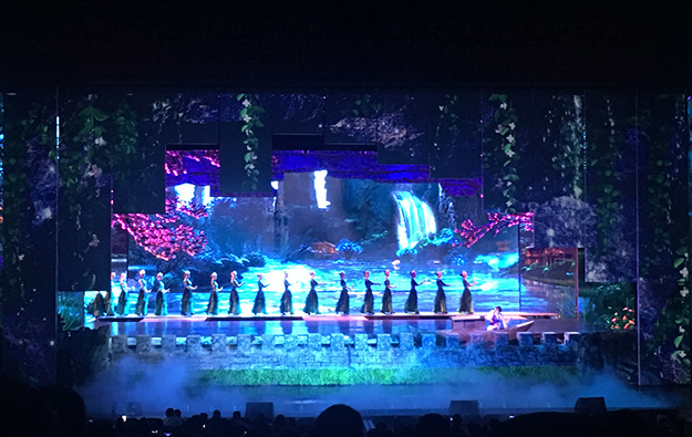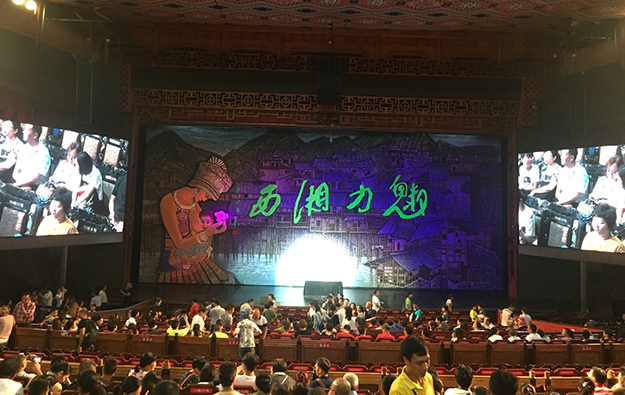 入夜的張家界微風(fēng)輕拂,風(fēng)情十足。到達(dá)張家界的第一天,綠之韻家人們乘著月色前往觀看“魅力湘西”大型文藝節(jié)目?!镑攘ο嫖鳌笔窍嫖魑幕目s影,在保留湘西原生態(tài)民俗文化的前提下,將民族音樂(lè)和舞蹈與聲、光、電完美結(jié)合,讓觀眾欣賞到一臺(tái)原汁原味的湘西文化大餐,是當(dāng)?shù)厣贁?shù)民族風(fēng)俗的靈魂。綠之韻伙伴們興高采烈地盡情觀賞,直到節(jié)目結(jié)束都意猶未盡。
