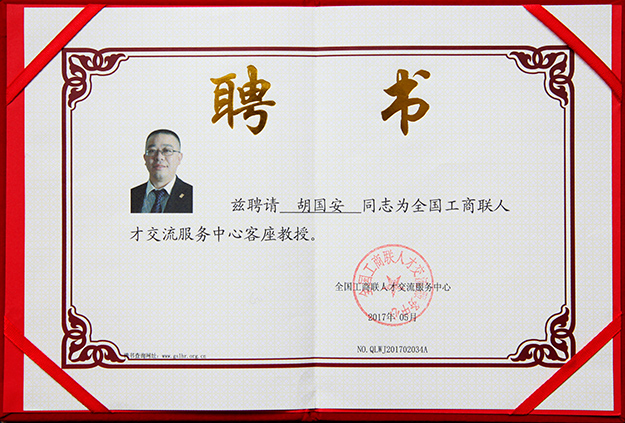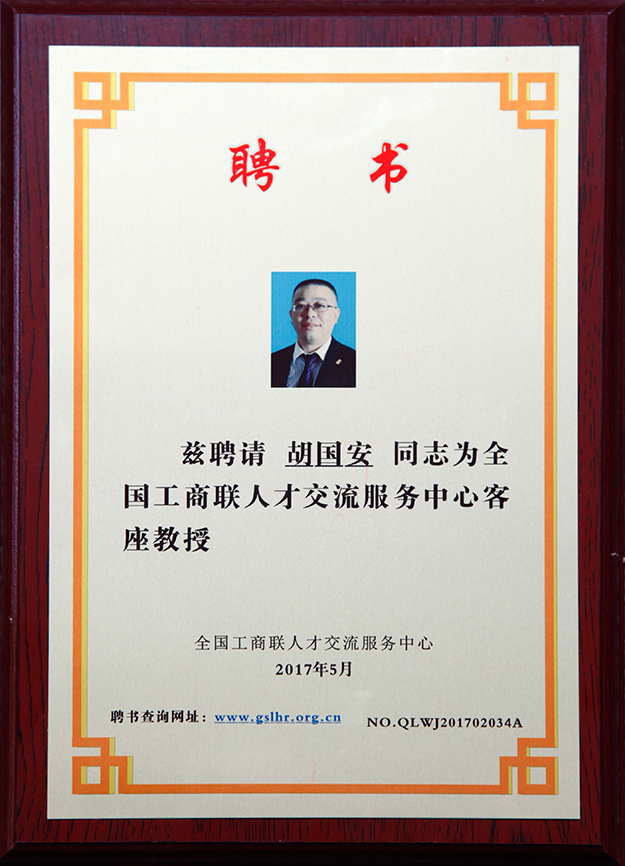 日前,經(jīng)全國(guó)工商聯(lián)人才交流服務(wù)中心專家委員會(huì)評(píng)定,綠之韻集團(tuán)董事長(zhǎng)胡國(guó)安被全國(guó)工商聯(lián)人才交流服務(wù)中心聘為客座教授。此次評(píng)定從實(shí)踐經(jīng)驗(yàn)、理論水平和授課能力等三個(gè)維度進(jìn)行嚴(yán)格審核,專家委員會(huì)對(duì)胡國(guó)安先生的評(píng)審意見(jiàn)為:“本人及所在單位具有良好的社會(huì)聲譽(yù);具有較高的創(chuàng)業(yè)、管理經(jīng)驗(yàn)及較高理論授課水平;熱衷于大學(xué)生培訓(xùn)就業(yè)工作,具備傳播先進(jìn)經(jīng)營(yíng)管理經(jīng)驗(yàn)和理念的能力?!?br/>