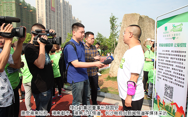 綠之韻集團董事長胡國安在活動現(xiàn)場接受湖南經(jīng)視、湖南都市、湖南公共頻道、長沙電視臺新聞頻道等媒體采訪時表示:2016年,綠之韻推出“綠跑”大型公益計劃,首站以“關(guān)愛兒童”為主題,活動募集的善款用于貧困山區(qū)失學(xué)兒童、孤殘兒童、患病兒童群體的愛心幫扶;在不久前舉行的“綠跑”湘西吉首站作為“綠跑”大型公益活動的第二站,為患病貧困母親開展免費“兩癌”檢查項目;此次“綠跑”松雅湖站以關(guān)愛“貧困母親”為主題,按照活動規(guī)則,每一名在30分鐘內(nèi)跑完5.20公里全程的選手,都能募得由綠之韻公益基金會提供的520元善款,用于面向貧困母親的精準(zhǔn)扶貧項目。