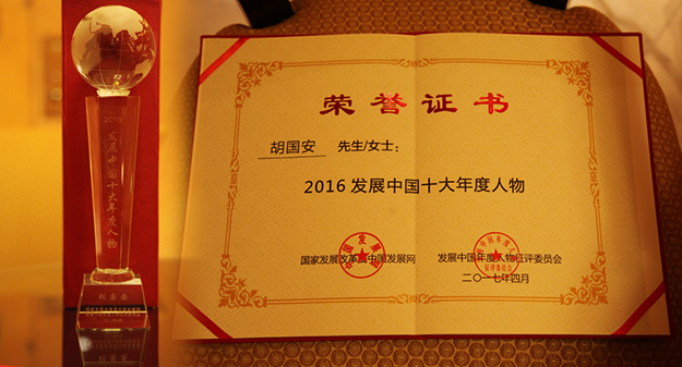2016“發(fā)展中國(guó)年度人物”征評(píng)以“創(chuàng)新、協(xié)調(diào)、綠色、開(kāi)放、共享”發(fā)展理念為指導(dǎo),以“挑戰(zhàn)、責(zé)任、創(chuàng)新”為關(guān)鍵詞,以“創(chuàng)新力、影響力、貢獻(xiàn)力、發(fā)展力、經(jīng)營(yíng)力”為征評(píng)標(biāo)準(zhǔn),深度挖掘我國(guó)經(jīng)濟(jì)社會(huì)發(fā)展中標(biāo)志性事件及典型人物,在立足年度經(jīng)濟(jì)社會(huì)發(fā)展的同時(shí),關(guān)注經(jīng)濟(jì)轉(zhuǎn)型中的標(biāo)志性事件和導(dǎo)向性人物,大力宣傳一批具有代表性和影響力的典型人物,弘揚(yáng)他們的先進(jìn)理念,展示他們的奮斗歷程,進(jìn)一步調(diào)動(dòng)企業(yè)家的創(chuàng)業(yè)精神和創(chuàng)業(yè)激情,激勵(lì)他們?yōu)槲覈?guó)經(jīng)濟(jì)社會(huì)發(fā)展做出更大貢獻(xiàn)。綠之韻集團(tuán)在胡國(guó)安董事長(zhǎng)的引領(lǐng)下,堅(jiān)持以尖端生物技術(shù)為依托,致力于發(fā)掘傳統(tǒng)中醫(yī)藥和五千年養(yǎng)生文化精髓。始終秉承“關(guān)愛(ài)生命、綠色產(chǎn)品、天然環(huán)保、質(zhì)高品優(yōu)”的產(chǎn)品理念,每年都投入大量的科研資金,引進(jìn)和培養(yǎng)高水平的科研專(zhuān)家、專(zhuān)業(yè)研究人才,并與南京大學(xué)、湖南中醫(yī)藥大學(xué)、湖南農(nóng)業(yè)大學(xué)、南方醫(yī)科大學(xué)等科研機(jī)構(gòu)和院校展開(kāi)產(chǎn)學(xué)研戰(zhàn)略合作,全力打造“產(chǎn)學(xué)研”成功合作典范,在國(guó)內(nèi)通過(guò)多項(xiàng)國(guó)際權(quán)威認(rèn)證和國(guó)家高新技術(shù)專(zhuān)利。同時(shí),公司積極響應(yīng)“鼓勵(lì)和支持民營(yíng)企業(yè)結(jié)合金融資本上市”的號(hào)召,打造專(zhuān)業(yè)金融管理團(tuán)隊(duì),培育大健康產(chǎn)業(yè)下的大金融產(chǎn)業(yè)布局體系,服務(wù)于國(guó)家“一帶一路”整體發(fā)展戰(zhàn)略。在發(fā)展實(shí)業(yè)的同時(shí),綠之韻集團(tuán)穩(wěn)步推進(jìn)“互聯(lián)網(wǎng)+特色農(nóng)產(chǎn)品、服務(wù)三農(nóng)+產(chǎn)業(yè)扶貧”模式,精準(zhǔn)扶貧,產(chǎn)業(yè)富民。十四年來(lái),綠之韻在胡國(guó)安董事長(zhǎng)帶領(lǐng)下,踴躍參與和傾情捐助了教育、關(guān)愛(ài)老人、賑災(zāi)、扶貧、幫困等100多項(xiàng)社會(huì)慈善事業(yè),累計(jì)捐贈(zèng)款物達(dá)6700多萬(wàn)元。除了大力吸納就業(yè)、帶動(dòng)創(chuàng)業(yè),綠之韻還采取扶持式帶動(dòng),鼓勵(lì)和幫助7000多人自主創(chuàng)業(yè);全力以赴推進(jìn)涉農(nóng)項(xiàng)目開(kāi)發(fā),綠之韻湖南安化萬(wàn)畝中藥材種植基地是湖南省委、省政府“萬(wàn)企聯(lián)村·共同發(fā)展”30個(gè)省級(jí)重點(diǎn)示范項(xiàng)目之一,通過(guò)產(chǎn)業(yè)式、造血式扶貧,40萬(wàn)受益農(nóng)民不需外出務(wù)工,實(shí)現(xiàn)了就地轉(zhuǎn)化就業(yè),促進(jìn)了當(dāng)?shù)亟?jīng)濟(jì)發(fā)展和社會(huì)和諧促,成為了幫助政府解決“三農(nóng)”難題的標(biāo)桿企業(yè)。