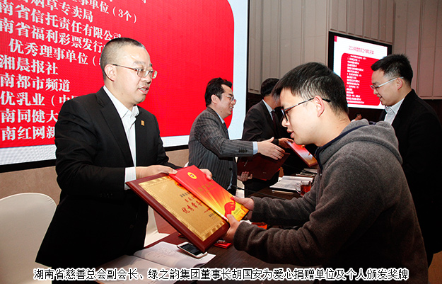 為進(jìn)一步推動慈善事業(yè)發(fā)展,表彰對湖南慈善事業(yè)發(fā)展做出突出貢獻(xiàn)的先進(jìn)典型,會議還表彰了年度最具愛心捐贈單位、慈善總會優(yōu)秀會員單位和優(yōu)秀會員。綠之韻集團董事長胡國安被評為“湖南慈善總會2016年度優(yōu)秀副會長”。獲此殊榮,胡國安董事長表示:慈善是一種力量,慈善更是一種信仰。從2003年創(chuàng)業(yè)之初許下捐建38所綠之韻希望小學(xué)的承諾,到2006年設(shè)立“綠之韻慈善基金”、到2015年通過省民政廳批準(zhǔn)成立綠之韻公益基金會……十四年來,綠之韻踴躍參與和傾情捐助了100多項社會慈善事業(yè),累計捐助款物達(dá)6700多萬元,期以通過大愛和行動,去影響、去帶動更多的企業(yè)和個人加入到公益慈善的行列。未來,綠之韻還將與慈善總會一起,積極探索社會慈善與自身扶貧濟困、利益人群、服務(wù)社會優(yōu)良傳統(tǒng)相結(jié)合的方式,為建設(shè)富饒美麗幸福新湖南、構(gòu)建和諧社會、促進(jìn)社會發(fā)展,書寫更多慈善溫暖的篇章!