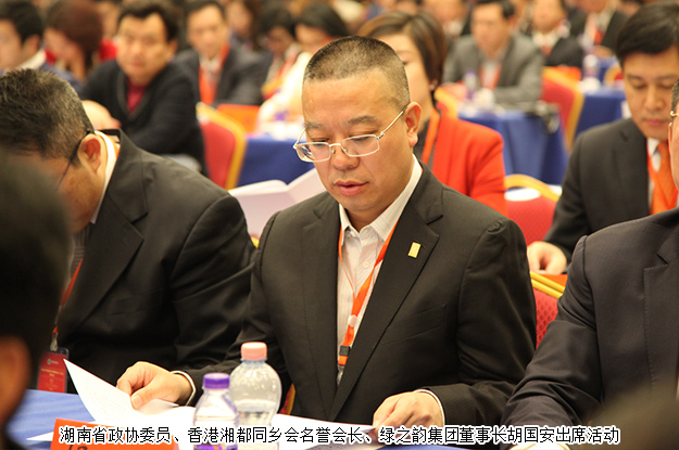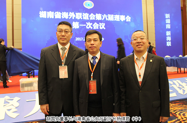 聚力新海聯(lián),建設(shè)新湖南。2017年2月18-19日,湖南省海外聯(lián)誼會(huì)第六屆理事會(huì)第一次會(huì)議在長沙隆重召開。中共湖南省委書記、省人大常委會(huì)主任杜家毫,中共湖南省委副書記、省人民政府省長許達(dá)哲,中共湖南省委常委、省委統(tǒng)戰(zhàn)部部長黃蘭香,湖南省人民政府副省長、省政府秘書長楊光榮,中央統(tǒng)戰(zhàn)部三局巡視員、中華海外聯(lián)誼會(huì)副秘書長許光任,中共湖南省委統(tǒng)戰(zhàn)部常務(wù)副部長譚平等領(lǐng)導(dǎo)出席活動(dòng)。湖南省政協(xié)委員、香港湘都同鄉(xiāng)會(huì)名譽(yù)會(huì)長、綠之韻集團(tuán)董事長胡國安受邀出席會(huì)議,并當(dāng)選湖南省海外聯(lián)誼會(huì)第六屆理事會(huì)常務(wù)理事。