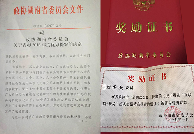 會(huì)議聽(tīng)取了湖南省政協(xié)副主席賴明勇代表十一屆省政協(xié)常委會(huì)所作的關(guān)于十一屆四次會(huì)議以來(lái)提案工作情況的報(bào)告。會(huì)議還表彰了112名優(yōu)秀政協(xié)委員和41件優(yōu)秀提案,胡國(guó)安委員《關(guān)于推進(jìn)“互聯(lián)網(wǎng)+扶貧”模式,實(shí)施精準(zhǔn)扶貧的建議》被政協(xié)湖南省委員會(huì)授予“優(yōu)秀提案”,湖南省政協(xié)副主席楊維剛宣讀了表彰決定。