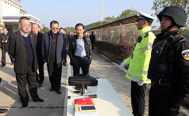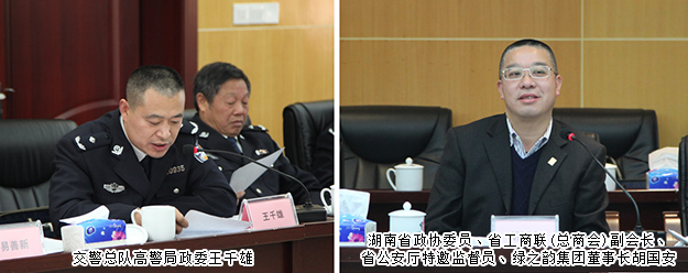 2016年12月16日下午,湖南省政協(xié)委員、省工商聯(lián)(總商會(huì))副會(huì)長(zhǎng)、省公安廳特邀監(jiān)督員、綠之韻集團(tuán)董事長(zhǎng)胡國(guó)安隨同湖南省公安廳黨委委員、紀(jì)委書(shū)記周賽保,省公安廳警令部副主任戴綱、紀(jì)委副書(shū)記宋紅兵、紀(jì)委副書(shū)記方士林、刑偵總隊(duì)政委馮偉儉、交警總隊(duì)政委楊能、交警總隊(duì)高警局政委王千雄、警務(wù)督察總隊(duì)政委王建國(guó)等一行赴湖南省高速警察局株洲支隊(duì)荷塘大隊(duì)調(diào)研。