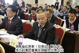 2016年11月29日上午,湖南省委非公有制經(jīng)濟(jì)工作會(huì)議在湖南賓館召開。中共湖南省委副書記、省人民政府代省長(zhǎng)許達(dá)哲,中共湖南省委常委、省人民政府常務(wù)副省長(zhǎng)陳向群,中共湖南省委常委、長(zhǎng)沙市委書記易煉紅,中共湖南省委常委、省紀(jì)委書記傅奎,中共湖南省委常委、省委政法委書記、省人民政府副省長(zhǎng)、省公安廳廳長(zhǎng)黃關(guān)春,中共湖南省委常委、省委統(tǒng)戰(zhàn)部部長(zhǎng)黃蘭香,湖南省人民政府副省長(zhǎng)、省工商聯(lián)主席何報(bào)翔,湖南省人民政府副省長(zhǎng)張劍飛,湖南省政協(xié)副主席、民盟省委主委、省國(guó)土資源廳副廳長(zhǎng)楊維剛等出席會(huì)議,湖南省工商聯(lián)(總商會(huì))副會(huì)長(zhǎng)、綠之韻集團(tuán)董事長(zhǎng)胡國(guó)安出席本次會(huì)議。