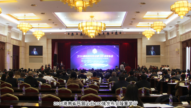 下午,經(jīng)湖南省人民政府批準(zhǔn),湖南省工商聯(lián)(湖南省總商會(huì))在湖南賓館會(huì)議中心隆重發(fā)布“2016湖南省民營(yíng)企業(yè)100強(qiáng)”名單以及湖南工業(yè)制造業(yè)、農(nóng)業(yè)產(chǎn)業(yè)化、商貿(mào)服務(wù)業(yè)、文化旅游業(yè)、開發(fā)建設(shè)業(yè)、進(jìn)出口業(yè)等領(lǐng)域10強(qiáng)民營(yíng)企業(yè)名單。