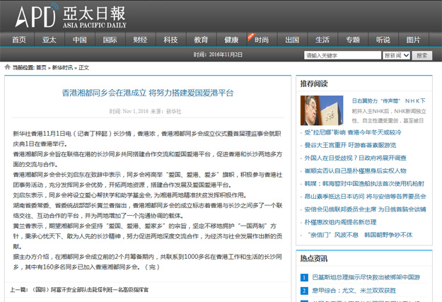 2016年11月1日,湖南香港湘都同鄉(xiāng)會(huì)在香港北角海逸君綽酒店成立。同鄉(xiāng)會(huì)號(hào)召居港老鄉(xiāng)團(tuán)結(jié)一心,共創(chuàng)美好未來(lái)。會(huì)上,來(lái)自香港的200多名湖南老鄉(xiāng)匯聚一堂,共暢友誼,共謀未來(lái)。