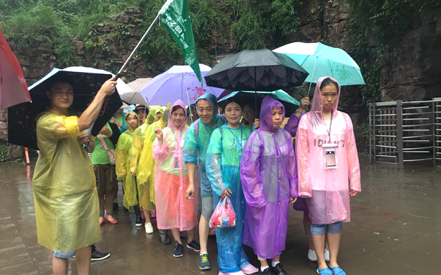 天公不作美,進(jìn)入武陵源景區(qū)后,張家界下起了雨,家人們紛紛穿上了五顏六色的雨衣,為濃郁的森林添加了一抹亮麗的風(fēng)采。在確保安全的情況下,綠之韻的家人們都不懼風(fēng)雨,跨越過七千多級臺階,走完了全程,每個腳印都鐫刻著綠之韻人的堅毅!一位營銷精英說道:“來張家界隨時都有山看,可是雨中張家界,如此云霧繚繞的仙境實在難得!”