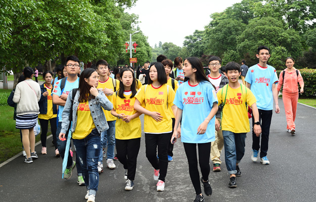 從橘子洲頭毛澤東青年藝術(shù)雕像處出發(fā),大家三五成群,沿著既定的線路徒步前行,相識的、不相識的,大家揮舞雙手,以眼神鼓勁,用微笑問候,朝著一個(gè)共同的夢想、共同的愛心、共同的追求邁進(jìn)。行走隊(duì)伍吸引了許多民眾的廣泛關(guān)注,民眾們自發(fā)自覺融入到愛心隊(duì)伍當(dāng)中。此次行走活動(dòng)途徑攬?jiān)峦?、橘洲客棧、詩詞碑、桃園等景點(diǎn),湘江兩岸風(fēng)光盡收眼底,沿途的歡聲笑語和美麗風(fēng)景讓大家忘記了行走的疲勞。