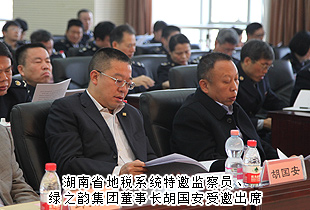 2016年2月29日,湖南省地稅系統(tǒng)黨風(fēng)廉政建設(shè)工作會(huì)議在長(zhǎng)沙成功召開(kāi)。此次會(huì)議傳達(dá)了中紀(jì)委六次全會(huì)、省紀(jì)委八次全會(huì)、全國(guó)稅務(wù)系統(tǒng)黨風(fēng)廉政建設(shè)工作會(huì)議精神,回顧總結(jié)了2015年全省地稅系統(tǒng)黨風(fēng)廉政建設(shè)工作,分析研判當(dāng)前形勢(shì),研究部署了2016年工作任務(wù)。湖南省地稅局黨組書(shū)記、局長(zhǎng)張?jiān)朴?,湖南省地稅局黨組成員、副局長(zhǎng)鐘世明等領(lǐng)導(dǎo)出席會(huì)議。湖南省地稅系統(tǒng)特邀監(jiān)察員、綠之韻集團(tuán)董事長(zhǎng)胡國(guó)安受邀出席。