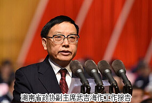 湖南省政協(xié)十一屆四次會(huì)議是在全省深入學(xué)習(xí)貫徹中共十八大、十八屆三中、四中、五中全會(huì)精神、共謀湖南改革發(fā)展的一次重要會(huì)議,是湖南省人民政協(xié)事業(yè)承前啟后、繼往開(kāi)來(lái)的一次盛會(huì)。1月24日,出席開(kāi)幕式并在主席臺(tái)就座的有:中共湖南省委書(shū)記、省人大常委會(huì)主任徐守盛,中共湖南省委副書(shū)記、省長(zhǎng)杜家毫,湖南省政協(xié)副主席武吉海、孫建國(guó)、袁隆平、劉曉、王曉琴、楊維剛、張大方、歐陽(yáng)斌、賴(lài)明勇、葛洪元和秘書(shū)長(zhǎng)袁新華。