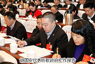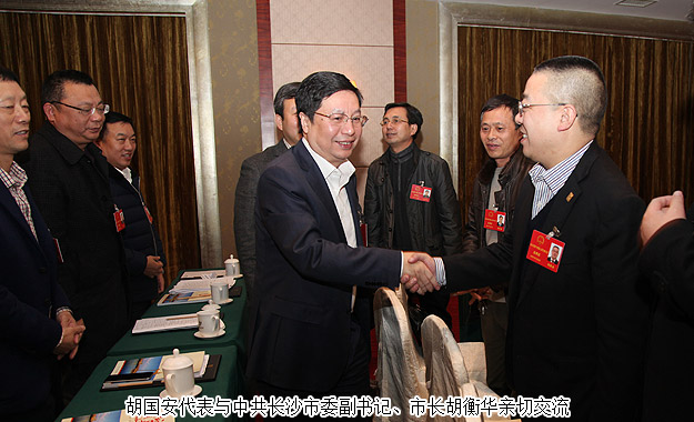大會(huì)開(kāi)幕式后,中共湖南省委常委、長(zhǎng)沙市委書(shū)記易煉紅,長(zhǎng)沙市委副書(shū)記、市長(zhǎng)胡衡華,長(zhǎng)沙市人大常委會(huì)主任袁觀(guān)清等來(lái)到代表駐地,看望參加長(zhǎng)沙市十四屆人大四次會(huì)議的全體代表,鼓勵(lì)大家暢所欲言、獻(xiàn)計(jì)獻(xiàn)策。胡國(guó)安代表與各位領(lǐng)導(dǎo)、代表座談時(shí)發(fā)言,“在今年的政府工作報(bào)告中,市委市政府始終圍繞“創(chuàng)新、協(xié)調(diào)、綠色、開(kāi)放、共享”八個(gè)字做文章,尤其是關(guān)于民生、精準(zhǔn)扶貧的篇幅很大,讓人倍感務(wù)實(shí)和與時(shí)俱進(jìn),給人很強(qiáng)的信心。市委市政府著力推進(jìn)瀏陽(yáng)河生態(tài)經(jīng)濟(jì)帶建設(shè)的整體思路與綠之韻集團(tuán)的綠色、生態(tài)經(jīng)濟(jì)發(fā)展思路,以及在瀏陽(yáng)河與撈刀河畔建立生態(tài)休閑園、建立五星級(jí)生態(tài)酒店等未來(lái)發(fā)展規(guī)劃不謀而合,這充分體現(xiàn)了市委市政府決策的前瞻性和綠之韻規(guī)劃的正確性。同時(shí),這次會(huì)議在承前啟后的特殊時(shí)期召開(kāi),可謂意義特別重大。如何謀劃好‘十三五’發(fā)展,實(shí)現(xiàn)好‘十三五’的精彩開(kāi)局和開(kāi)門(mén)紅,是我們所有人大代表十分關(guān)切、十分關(guān)心的問(wèn)題。綠之韻集團(tuán)將緊緊團(tuán)結(jié)在市委、市政府周?chē)?,搶抓機(jī)遇,加快發(fā)展,為努力建設(shè)能量更大、實(shí)力更強(qiáng)、城鄉(xiāng)更美、民生更爽的長(zhǎng)沙,貢獻(xiàn)自己應(yīng)有的力量!”