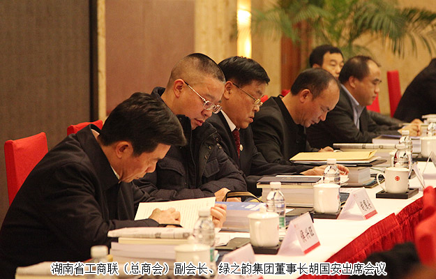 2016年1月11日,湖南省工商聯(lián)(總商會(huì))十一屆六次常委會(huì)議、十一屆五次執(zhí)委會(huì)議在長沙召開,大會(huì)總結(jié)2015年工作,部署2016年任務(wù),會(huì)上還發(fā)出“積極參與‘萬企幫萬村’精準(zhǔn)扶貧”的行動(dòng)倡議。湖南省副省長、省工商聯(lián)(總商會(huì))主席何報(bào)翔出席會(huì)議并講話。湖南省發(fā)改委副主任王亮方,湖南省工商聯(lián)(總商會(huì))副會(huì)長、綠之韻集團(tuán)董事長胡國安,湖南省工商聯(lián)女商會(huì)副會(huì)長、綠之韻集團(tuán)董事執(zhí)行總裁勞嘉以及湖南省工商聯(lián)(總商會(huì))全體副主席、副會(huì)長、常執(zhí)委,駐湘副省級(jí)以上地區(qū)異地商會(huì)會(huì)長、秘書長,省委統(tǒng)戰(zhàn)部、省工商聯(lián)機(jī)關(guān)處室負(fù)責(zé)人參加會(huì)議。