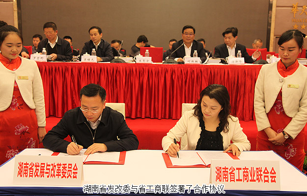 會(huì)上,湖南省發(fā)改委與省工商聯(lián)簽署了合作協(xié)議,湖南省發(fā)改委副主任王亮方作關(guān)于“十三五”規(guī)劃和“一帶一路”的講座。大會(huì)還審議通過了有關(guān)人事事項(xiàng)。