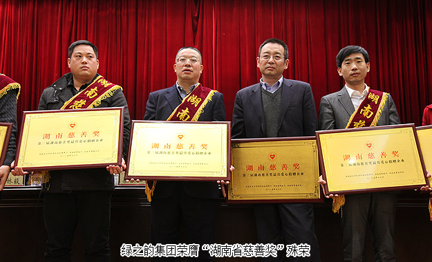 2015年12月18日上午,湖南省慈善總會第三次會員代表大會暨第三屆“湖南慈善獎”表彰大會在長沙舉行。中華慈善總會副會長李宏塔,中華慈善總會秘書長邊志偉,湖南省政協(xié)原主席、省慈善總會第二屆理事會會長王克英,湖南省人民政府副省長蔡振紅,湖南省人民政府副秘書長王光明,湖南省民政廳廳長、黨組書記、省社會組織黨工委書記段林毅,湖南省民政廳巡視員、省社會組織黨工委副書記李勁夫等出席會議。會上,因?yàn)樵诠娲壬剖聵I(yè)中做出的重大貢獻(xiàn),湖南省工商聯(lián)(總商會)副會長、湖南省光彩事業(yè)促進(jìn)會副會長、長沙光彩基金會理事長、綠之韻集團(tuán)董事長胡國安當(dāng)選湖南省慈善總會副會長;綠之韻集團(tuán)被湖南省人力資源和社會保障廳、省民政廳、省慈善總會聯(lián)合授予“湖南省慈善獎最具愛心捐贈企業(yè)”殊榮。