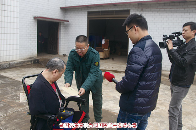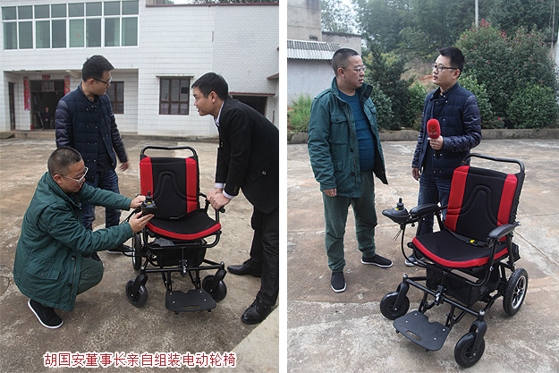 被周國民樂觀自強(qiáng)的精神所感動(dòng),綠之韻公益基金會(huì)攜手湖南經(jīng)視《鐘山說事》欄目讓夢想照進(jìn)現(xiàn)實(shí),幫周國民購置了嶄新的電動(dòng)輪椅,圓了他的自由行動(dòng)夢。綠之韻集團(tuán)胡國安董事長親自將輪椅組裝好,并耐心指導(dǎo)使用。