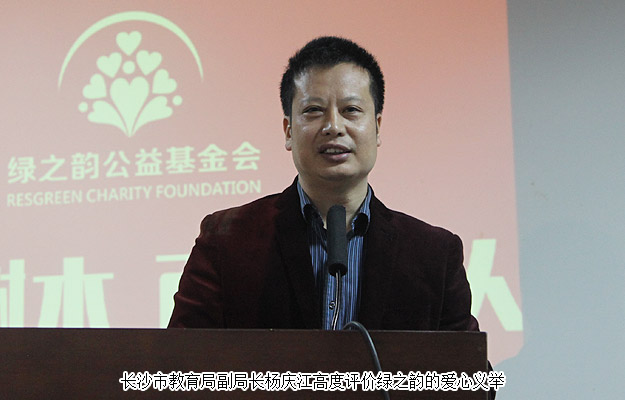 長沙市教育局副局長楊慶江高度評價了綠之韻集團的愛心義舉,親切勉勵孩子們珍惜這來之不易的學習機會。他表示,“致公?綠之韻班” 得到了湖南省委、長沙市委、教育局領(lǐng)導的高度重視,他希望學院要以“致公?綠之韻班”為平臺和載體,做好“致公班”學生的培養(yǎng)工作,將“致公?綠之韻班”辦出特色、辦出成績,針對學生的需求和社會的需要,培養(yǎng)出更多更優(yōu)秀的高技能人才。致公黨長沙市委專職副主委黃光裕在講話中提到,致公黨市委成立了“致愛小組”,將結(jié)對幫扶“致公班”學生,及時解決學生們在學習、心理和生活方面等問題。他還鼓勵學生們通過幾年的學習,認真學好技能,把貧困作為人生進步的動力,把報恩之心、感恩之情化為成才之志、奮發(fā)之源,將來以優(yōu)異的成績來回饋社會。