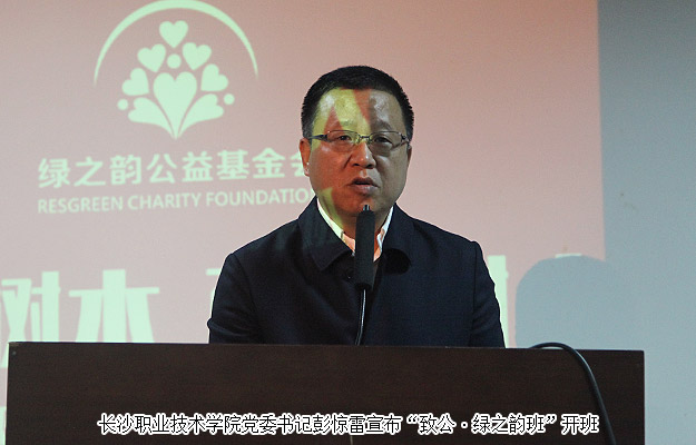 2015年11月3日,由綠之韻集團和致公黨長沙市委聯(lián)合開辦的“致公?綠之韻班”在長沙職業(yè)技術(shù)學院舉行了開班儀式。致公黨長沙市委專職副主委黃光裕、長沙市教育局副局長楊慶江、致公黨長沙市委秘書長梟燕等出席活動,綠之韻集團董事長胡國安,綠之韻集團辦公室主任、工會副主席馮紅,湖南省綠之韻公益基金會秘書長蔣文,綠之韻集團團委書記李倩婷,湖南分公司副經(jīng)理劉磊及愛心經(jīng)銷黃翔、李政沅、周書明等代表參加開班儀式。長沙職業(yè)技術(shù)學院黨委書記彭驚雷帶領(lǐng)學校領(lǐng)導班子成員和“致公?綠之韻班”50多名學生及部分教師代表參加活動。