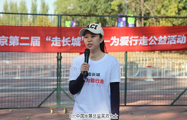 下午14時(shí)許,ICC全球第九屆“走長(zhǎng)城”(北京站)公益活動(dòng)舉行了簡(jiǎn)短的啟動(dòng)儀式?;顒?dòng)主持人簡(jiǎn)單介紹了“為愛行走”的活動(dòng)流程。從事公益16年的ICC中國(guó)發(fā)展總監(jiān)吳雙女士為活動(dòng)致辭,綠之韻集團(tuán)董事常務(wù)副總裁勞嘉發(fā)表講話:“今年,ICC全球‘走長(zhǎng)城’已經(jīng)走過(guò)九個(gè)年頭,綠之韻愛心志愿者已經(jīng)連續(xù)兩屆參加了為愛行走(北京站)公益活動(dòng)。未來(lái),綠之韻集團(tuán)、綠之韻公益基金會(huì)將積極響應(yīng)國(guó)家‘健康中國(guó)’、‘美麗中國(guó)’的號(hào)召,繼續(xù)堅(jiān)持‘關(guān)愛生命、回報(bào)社會(huì)’的經(jīng)營(yíng)理念,一如既往、再接再厲,帶動(dòng)和影響更多的愛心企業(yè)、愛心人士加入到關(guān)愛孤殘兒童的行列,集結(jié)愛、奉獻(xiàn)愛,集涓成流,匯愛成海,讓健康、美麗和愛成為我們每一位國(guó)人生命的習(xí)慣?!彪S后,勞嘉副總裁和吳雙總監(jiān)一起為參加本次活動(dòng)的愛心志愿者團(tuán)隊(duì)授旗,并宣布北京朝陽(yáng)公園為愛行走公益活動(dòng)正式啟動(dòng)。