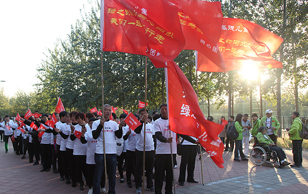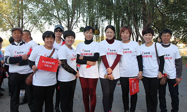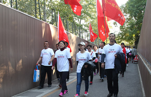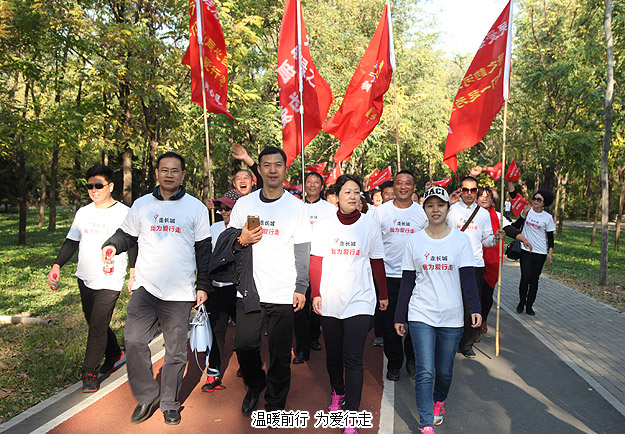 大家三五成群,從朝陽(yáng)公園東5門出發(fā),沿著既定的線路徒步前行,相識(shí)的、不相識(shí)的,大家揮舞慈善紅旗,以眼神鼓勁,用微笑問候,朝著一個(gè)共同的夢(mèng)想、共同的愛心、共同的追求邁進(jìn)。在這條人流中,匯聚著綠之韻愛心經(jīng)銷商、公務(wù)員、知識(shí)分子、企業(yè)老板、務(wù)工人員、學(xué)生……彼此并不相識(shí),博愛的名義卻把大家的心緊緊地連在了一起,誰(shuí)人又不被感動(dòng)呢?一陣氣喘吁吁,一身大汗淋漓,所有的愛心志愿者憑借著堅(jiān)韌的意志和奉獻(xiàn)愛心的渴望,全部走完既定的6公里路程,安全返回,互致勝利的祝福,并合影紀(jì)念。