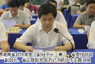 為加快非公有制經(jīng)濟(jì)和中小企業(yè)發(fā)展,促進(jìn)民營(yíng)企業(yè)健康平穩(wěn)發(fā)展,2015年9月11日上午九點(diǎn),湖南省政協(xié)關(guān)于“我省民營(yíng)企業(yè)發(fā)展面臨的問題與對(duì)策”雙周協(xié)商會(huì)在湖南賓館會(huì)議中心隆重舉行。湖南省政協(xié)副主席張大方、歐陽斌,秘書長(zhǎng)袁新華,湖南省政協(xié)常委、副秘書長(zhǎng)(兼)、省委統(tǒng)戰(zhàn)部副部長(zhǎng)、省工商聯(lián)黨組書記湯新華,湖南省政協(xié)常委、省工商聯(lián)(總商會(huì))副主席、長(zhǎng)沙市政協(xié)副主席、長(zhǎng)沙市工商聯(lián)(總商會(huì))主席(會(huì)長(zhǎng))彭繼球,湖南省政協(xié)委員、郴州市政協(xié)副主席、郴州市工商聯(lián)(總商會(huì))主席(會(huì)長(zhǎng))周海林等領(lǐng)導(dǎo)出席會(huì)議,部分省政協(xié)委員、專家學(xué)者,相關(guān)省直單位負(fù)責(zé)人,市縣政協(xié)負(fù)責(zé)人等參加會(huì)議。湖南省政協(xié)委員、省工商聯(lián)(總商會(huì))副會(huì)長(zhǎng)、綠之韻集團(tuán)董事長(zhǎng)胡國(guó)安應(yīng)邀出席。本次會(huì)議由湖南省政協(xié)副主席歐陽斌主持。