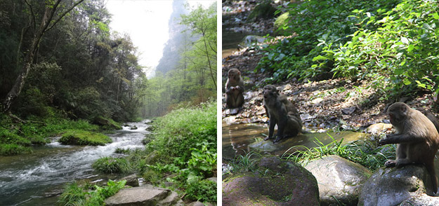 最后一天,家人們來到風景更加秀麗黃石寨和金鞭溪。俗話說“不上黃石寨,枉到張家界”。它是張家界森林公園最大、 最集中的觀景臺,從南面登寨,沿途有天書寶匣、定海神針、南天門、南天一柱、摘星臺、天橋遺墩、六奇閣等絕佳景點。爬夠了山,家人們最后來到了被譽為“世界上最美麗的峽谷之一”的金鞭溪,這里是武陵源風景最美的地界,穿行在峰巒幽谷間,溪水明凈,跌宕多姿,小魚游弋其中。溪畔花草鮮美,鳥鳴鶯啼,人沿清溪行,勝似畫中游,還有野生的猴子與游人嬉戲,搶零食,拍合影。綠之韻的家人們欣賞著大自然贈與的美好,呼吸著天然氧吧里的新鮮空氣,感嘆著這次旅游的收獲與快樂,紛紛用手機將美好定格,舍不得結(jié)束這次美好的張家界之旅。