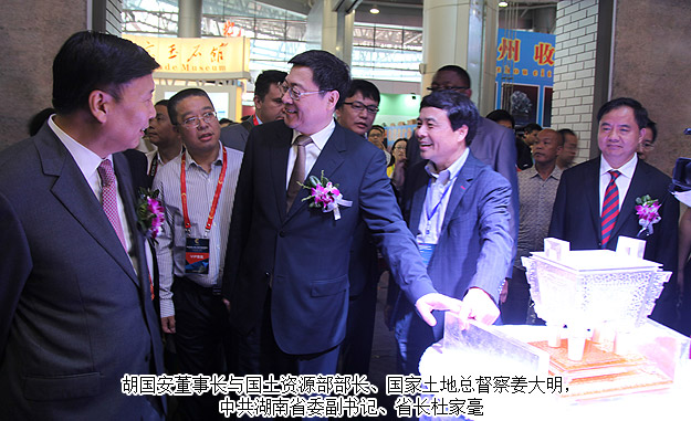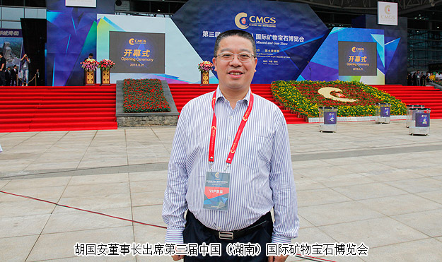 2015年5月21-25日, 由湖南省人民政府和國土資源部聯(lián)合主辦,省國土資源廳、長沙市政府、郴州市政府等聯(lián)合承辦的第三屆中國(湖南)國際礦物寶石博覽會在郴州舉行。國土資源部部長、黨組書記、國家土地總督察姜大明宣布第三屆礦博會開幕,湖南省委副書記、省長杜家毫出席開幕式并講話。中共湖南省委常委、常務(wù)副省長陳肇雄主持開幕式。湖南省工商聯(lián)(總商會)副會長、綠之韻集團董事長胡國安受邀出席開幕式,并陪同國土資源部部長、黨組書記、國家土地總督姜大明,中共湖南省委副書記、湖南省人民政府省長杜家毫等領(lǐng)導(dǎo)一行視察展館。