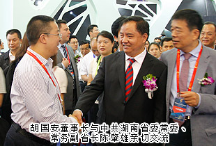 陪同領(lǐng)導(dǎo)巡館以后,胡國安董事長對本次礦博會成功舉辦高度評價:“國際礦博會的舉辦,讓‘湖南走出去’戰(zhàn)略得到了充實提升。這么多國家參展,必將吸引全世界的目光,這對于湖南文化和湖南經(jīng)濟社會來說,是一個天然的展示機會。湖南應(yīng)充分利用博覽會搭建的平臺,‘把會展與文化、旅游、科技、信息、商貿(mào)、物流更好地結(jié)合起來,著力推動會展經(jīng)濟和現(xiàn)代服務(wù)業(yè)加快發(fā)展’”。他表示:湖南地處中國中部城市要沖,無論是地理位置還是區(qū)位優(yōu)勢來看,都是屬于發(fā)展要沖,加上洞庭湖國家級生態(tài)經(jīng)濟區(qū)和長江經(jīng)濟帶的確立,更突顯了湖南的發(fā)展優(yōu)勢。推動會展經(jīng)濟發(fā)展,這是現(xiàn)代經(jīng)濟發(fā)展的一個重要支撐,如果與湖湘文化和大湘西旅游資源及商貿(mào)物流進行融合發(fā)展,這就讓湖南經(jīng)濟具備了強大的內(nèi)生動力,為湖南改革開放提供了一個天然的通道和平臺。所以,我們既要關(guān)注這次郴州礦博會的盛況,更要與湖南未來的發(fā)展結(jié)合起來看,目光不限于一隅,思路才會天地闊。