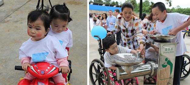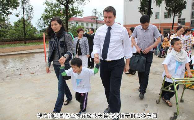 隨后,綠之韻愛心志愿者們與分配的小家庭一起,分組陪伴孩子們從新家院子到游樂場玩耍,同孩子們一起用餐和學(xué)習(xí)。雖然一些孩子動作遲鈍、在語言交流上有一些困難,但孩子們很快和熱情的綠之韻的愛心志愿者們打成一片,玩得非常開心。胡國安董事長和勞嘉副總裁親自為坐在輪椅上的小朋友系上特制秋千的綁帶,讓他們也感受到在秋千上飛起來感覺,孩子們的笑聲感染了現(xiàn)場每一個人。
