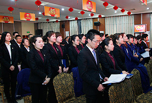金馬辭舊歲,福羊迎新春。在新春佳節(jié)來臨之際,在冬日暖陽映照的溫馨和諧氣氛下,2015年2月10日,綠之韻集團(tuán)2014年第四季度員工總結(jié)表彰大會暨新春團(tuán)拜會在綠之韻國際大酒店貴賓樓圓滿落幕。