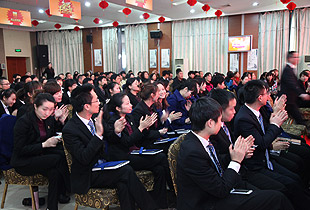 董事長胡國安告誡大家,綠之韻是一個與家人分享的平臺,是一個出新成就的舞臺,不管是各位員工,還是經(jīng)銷商都可以成為自己家人的驕傲,學(xué)習(xí)的榜樣。同時,向公司全體上下致以誠摯的新春問候,對2014年各部門堅持不懈、求真務(wù)實、兢兢業(yè)業(yè)的工作,積極化解各種挑戰(zhàn),在各種工作困境中突圍,企業(yè)始終保持著良性發(fā)展勢頭,取得了一系列新成績、新突破予以肯定與贊揚!為大家點贊,為年輕的團(tuán)隊點贊,為天城網(wǎng)點贊,為商學(xué)院點贊,為第一次投資房地產(chǎn)點贊,為曾經(jīng)受到批評的員工點贊,為所有在綠之韻事業(yè)里奮斗過的朋友點贊……最后,胡國安董事長還表示,希望全體綠之韻人2015年團(tuán)結(jié)協(xié)作,再接再厲,譜寫輝煌新章!