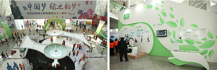 進(jìn)入湖南國際會展中心嘉年華活動入口處,印入眼簾的氣勢恢宏的企業(yè)文化歷程立體展板。與時代同行,與祖國同行,該展示區(qū)域從水的精神、家文化、企業(yè)經(jīng)營宗旨、產(chǎn)品理念、核心價值觀、歷史使命、愿景規(guī)劃等多個方面直觀、形象和生動地細(xì)數(shù)了綠之韻十一年文化傳承、輝煌發(fā)展之路。