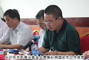 2014年8月26日,全國(guó)第一家市級(jí)光彩事業(yè)基金會(huì)組織——湖南省長(zhǎng)沙市光彩事業(yè)基金會(huì)第一屆第二次理事會(huì)召開。長(zhǎng)沙市政協(xié)副主席、市工商聯(lián)主席彭繼球,湖南省民政廳民間組織管理局副局長(zhǎng)劉素云,湖南省工商聯(lián)扶貧處處長(zhǎng)劉石鼎,中共長(zhǎng)沙市委統(tǒng)戰(zhàn)部副部長(zhǎng)、市工商聯(lián)黨組書記饒福明等領(lǐng)導(dǎo)以及全市工商聯(lián)各基層組織、行業(yè)(異地)商會(huì)、各會(huì)員企業(yè)代表出席會(huì)議,共同商議如何把光彩事業(yè)基金會(huì)做得更有聲色。湖南省長(zhǎng)沙市光彩事業(yè)基金會(huì)理事長(zhǎng)、綠之韻集團(tuán)董事長(zhǎng)胡國(guó)安出席會(huì)議并作《湖南省長(zhǎng)沙市光彩事業(yè)基金會(huì)工作報(bào)告》。