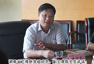 2014年8月25日,湖南省工商聯(lián)黨組成員、副主席陳宏忠,湖南省工商聯(lián)會員處處長謝明亮,中共湖南省委統(tǒng)戰(zhàn)部經(jīng)濟處副處長陳勝等一行蒞臨綠之韻集團考察指導。綠之韻集團董事長胡國安、董事常務(wù)副總裁勞嘉、總裁助理方彥雄全程陪同考察。
