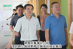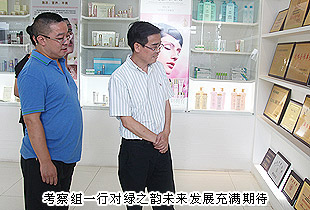 考察組一行首先參觀了綠之韻集團辦公大樓。從企業(yè)文化展區(qū)、現(xiàn)代化科技展示中心及五星級國際大酒店沙盤,到產(chǎn)品展示廳、黨團工作展示區(qū)……瀏陽市人大常委會主任魯建文等領(lǐng)導(dǎo)在胡國安董事長的陪同下,邊走邊看,邊仔細詢問邊頻頻點頭,以示肯定和贊許。期間,胡國安董事長就產(chǎn)品理念、市場運營、產(chǎn)學(xué)研合作、公益慈善、黨建工作以及黨的群眾路線教育實踐活動等相關(guān)情況向考察組一行作了簡短匯報。