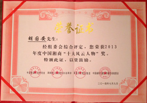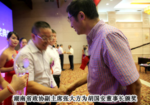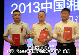 據(jù)悉,本次參加評選的企業(yè)家近200位,由省內(nèi)由各市州工商聯(lián)合推薦,根據(jù)其對企業(yè)成長、行業(yè)發(fā)展以及區(qū)域經(jīng)濟產(chǎn)生的重大影響等多項指標(biāo)挑選出17名企業(yè)家于2013年年底起在天下湘商網(wǎng)上開展公眾網(wǎng)絡(luò)投票,并同步在《湖南日報》等主流媒體上刊登投票情況。最終,綠之韻集團(tuán)胡國安董事長憑借多年來在湖南省的利稅大戶、解決就業(yè)、縣域經(jīng)濟、經(jīng)營模式等富民強省方面作出的重要貢獻(xiàn),再獲殊榮。湖南省政協(xié)副主席張大方為胡國安董事長頒獎,胡國安董事長表示:在“中國夢”成為時代最強音的今天,中國商人應(yīng)該有敢為人先的視野和情懷?!?013中國湘商十大風(fēng)云人物”稱號的獲得,鞭策我轉(zhuǎn)變價值觀,努力成為經(jīng)濟財富的創(chuàng)造者、公益社會的推動者、和諧社會的建設(shè)者、先進(jìn)文化的創(chuàng)造者。在“忠誠、擔(dān)當(dāng)、求是、圖強”新湖南精神的引領(lǐng)下,我將帶領(lǐng)綠之韻集團(tuán)發(fā)揮湖湘文化的優(yōu)勢,在湖南“四化兩型”建設(shè)中,在“四個湖南”的建設(shè)中發(fā)奮作為,為富民強省、實現(xiàn)“中國夢”作出新的貢獻(xiàn)!