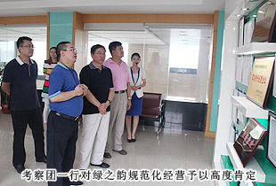 韓杰總隊(duì)長(zhǎng)一行首先參觀了綠之韻產(chǎn)品形象展廳,了解“以傳承中華五千年中醫(yī)藥養(yǎng)生文化”為使命的綠之韻中醫(yī)藥文化淵源和脈絡(luò)?!熬G色、天然、環(huán)保、健康、養(yǎng)生”的產(chǎn)品研發(fā)理念,以產(chǎn)、學(xué)、研結(jié)合為模式組建的產(chǎn)品科研團(tuán)隊(duì)都受到了韓杰總隊(duì)長(zhǎng)的充分肯定?!盀榱舜_保產(chǎn)品的品質(zhì),我們希望能夠更為全面的控制產(chǎn)品生物鏈上的所有環(huán)節(jié),包括原料、研發(fā)、生產(chǎn)和銷(xiāo)售,以打造綠之韻‘全產(chǎn)業(yè)鏈條’的產(chǎn)業(yè)結(jié)構(gòu)。我們擁有五大生產(chǎn)基地,其中益陽(yáng)萬(wàn)畝中藥材種植基地,為我們的保健食品提供了優(yōu)質(zhì)的產(chǎn)品原料,而‘綠之韻’進(jìn)一步督促我們注重產(chǎn)品品質(zhì),因此,綠之韻先后與南京大學(xué)、湖南中醫(yī)藥大學(xué)、湖南農(nóng)業(yè)大學(xué)、南方醫(yī)科大學(xué)等科研機(jī)構(gòu)、院校展開(kāi)戰(zhàn)略合作,共同服務(wù)于人類(lèi)健康,全力打造‘產(chǎn)學(xué)研’成功合作典范”,綠之韻集團(tuán)董事長(zhǎng)胡國(guó)安向考察團(tuán)一行匯報(bào)。
